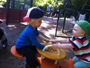 Efter jag hämtat Melvin på förskolan gick vi ner till ödleparken. Sofie och Edward kom dit. Vi lekte och hade lite picknick. Sen gick vi hem och åt middag och pysslade lite. Melvin älskade allt pyssel jag köpt.