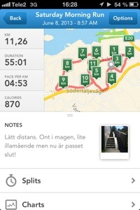 När Peter vaknade tog jag min runda. Hade planerat att köra snabbdistans, fartlek 7 km med 4 km uppvärmning och 4 km nedjogg. Men jag hade så himla ont i magen och kände mig lite illamående så det fick bli lätt distanslöpning istället, 11 km