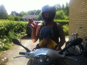 Vi har även hunnit fira tre-årig bröllopsdag, klippa gräsmatta, åka skateboard och Melvin har fått åka Vespa.
