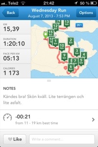 När jag kommit ut ur skogen var jag fylld med adrenalin och stegen kändes lätta så jag fortsatte en bit till men nu på asfalt. Kände att jag fått nog av skogsäventyr. Samlaget blev det 15 km
