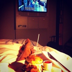 Ebba och Melvin har lekt, busat och badat här på hotellrummet. De har så kul tillsammans. Allt har gått jättebra och barnen sover gott och vi har ätit varsin burgare och druckit en öl och kollar TV, vilket vi inte har gjort på över en månad. Vi har inte haft någon TV sedan vi flyttade till huset och ingen i familjen verkar sakna den direkt.