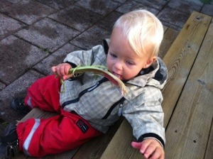 Sen kickade jag och barnen boll på tomten och käkade rabarber.