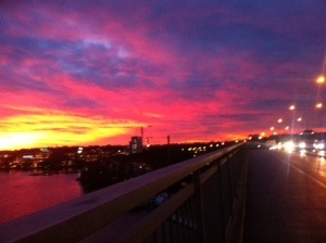 Jag sprang hem från MyClubs kontor vid Lindhagensplan. 17,5 km. Det var skönt och himlen var magisk. Jag älskar löpning!