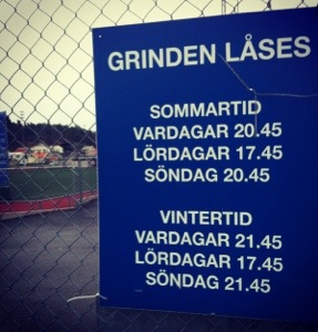 Jag hittade en positiv sak med vintertid idag. En får vara glad för det lilla. Idrottsplatsens och löpbanornas öppettider.