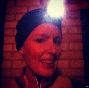Jag kände mig inte riktigt klar med träningen för dagen så det fick bli ett kvällspass också. Det regnade och blåste kraftigt. Jag testade att springa med pannlampa. Det funkade bra!