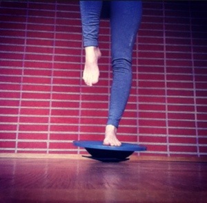 Jag fick en balansbräda i julklapp. Det är bra träning. Här får jag använda muskler som inte används när jag löptränar.