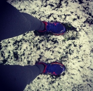 Jag började denna morgonen med en runda i skogen. 9,5 km. Det snöade inte på morgonen men det låg mycket snö och var isigt i skogen. Skulle nästan behövt mina Icebugs. Efter löpningen körde jag löpskolning, styrka och stretch.