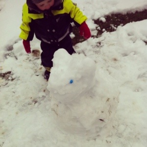 Efter förskolan gjorde vi en snögubbe och en snöhund.