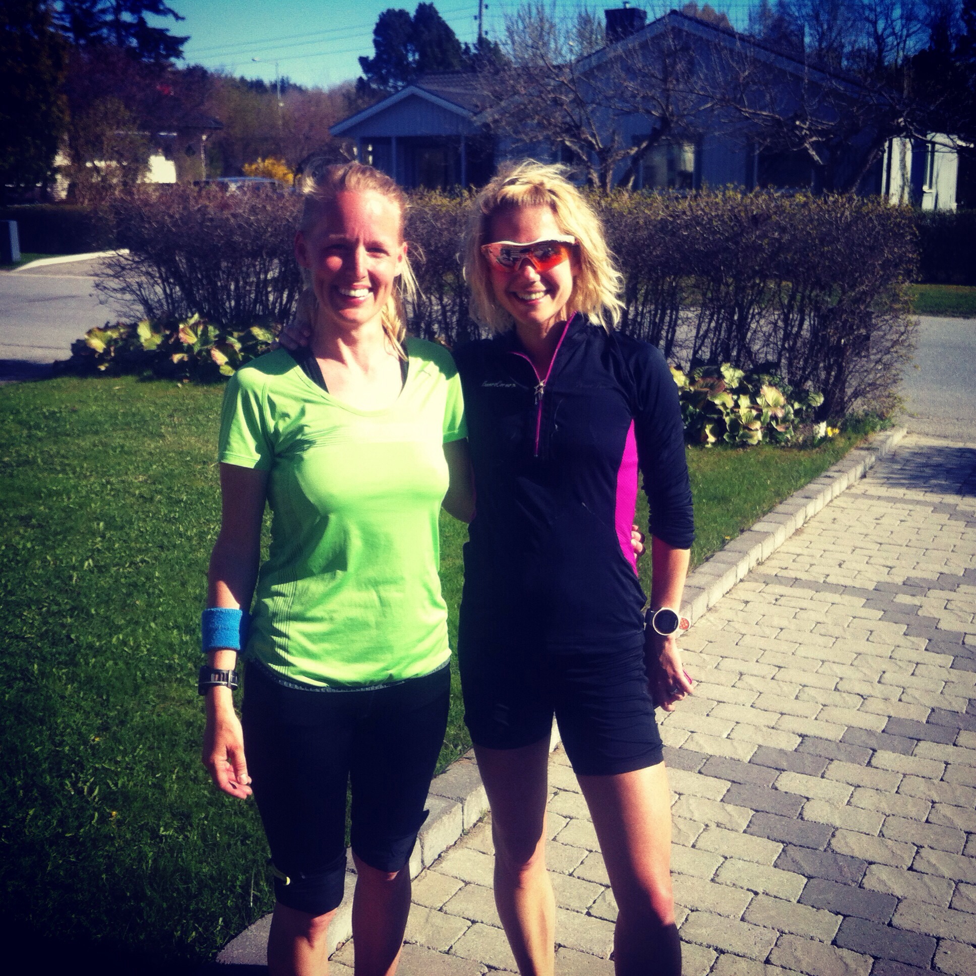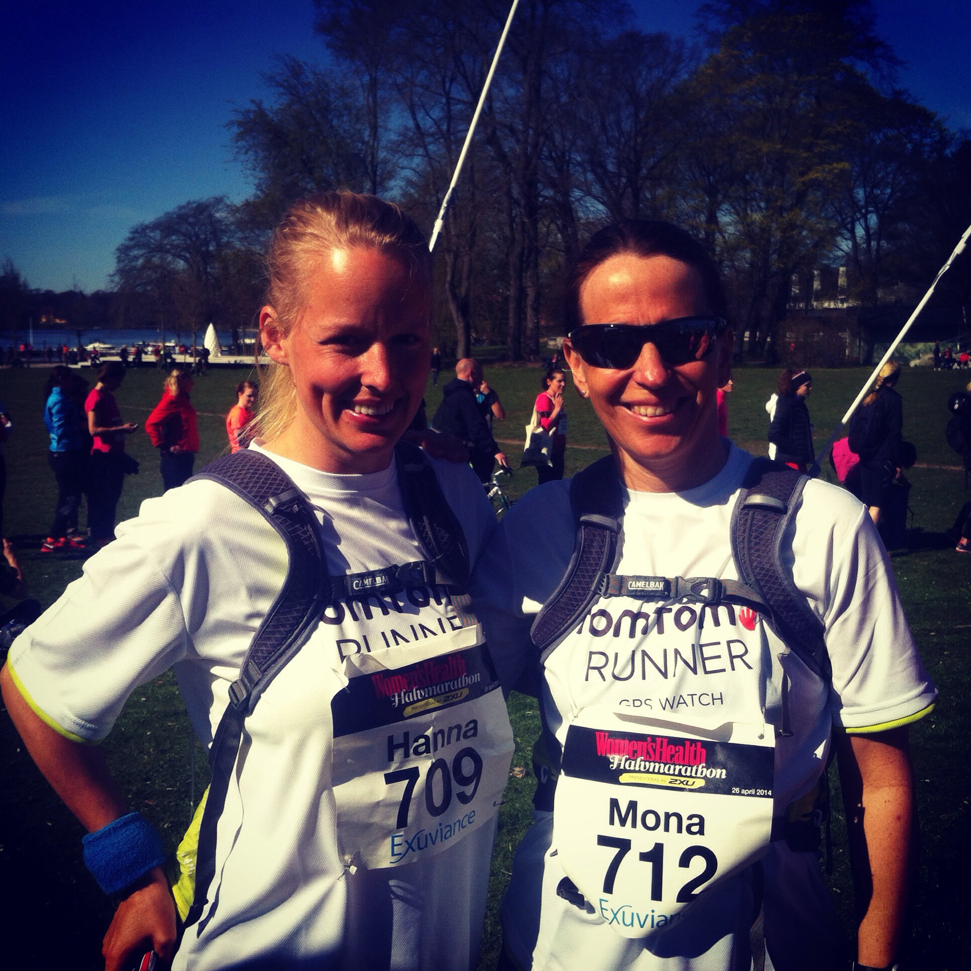 Här är foto på mig och min svägerska Mona innan start. Hon var farthållare för de som ville klara loppet på 1h och 49 min. Vi var så taggade att få springa!