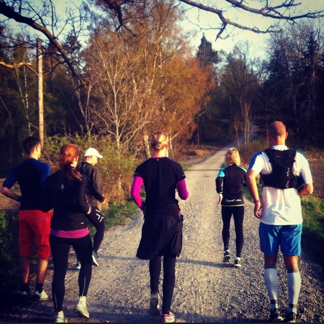 På kvällen stack jag ut igen. Nu på coachuppdrag. Skulle springa med bästa Ekerögänget.