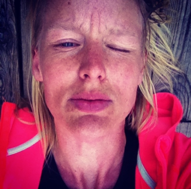 Så här såg jag ut efter träningen. Trött men nöjd efter 12 km löpning.