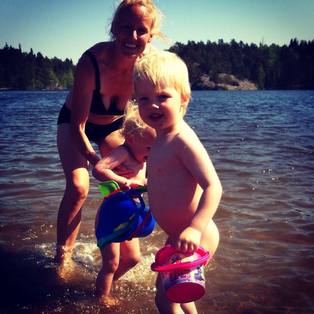 I fredags tog jag mitt premiärdopp för i år. Barnen och jag mötte upp Rosie. Vi badade och fikade. Barnen ville dock inte fika utan bara bada.