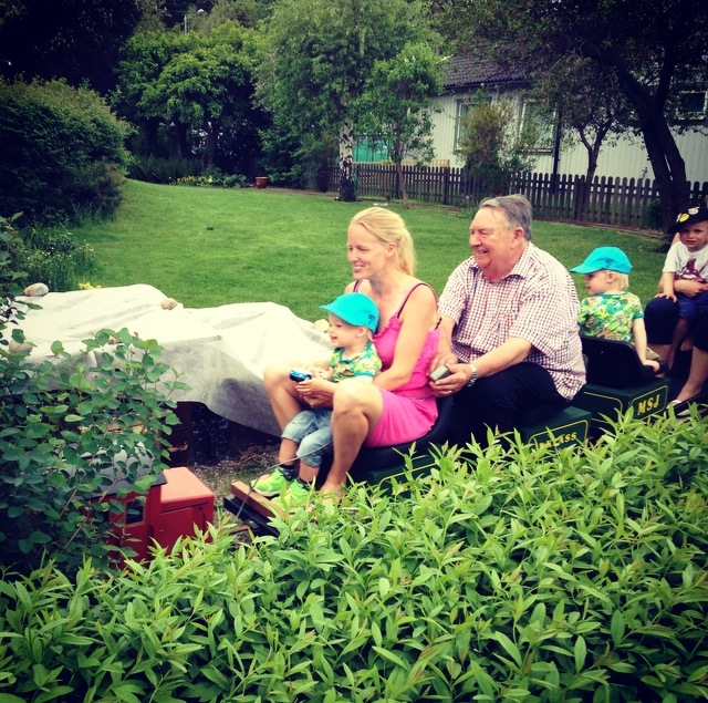 Han kunde inte förstå att inte alla hade en tågbana på tomten och efter att ha åkt med på en tur måste jag hålla med. Det var jättekul! Han hade till och med byggt en bro som vi åkte över.