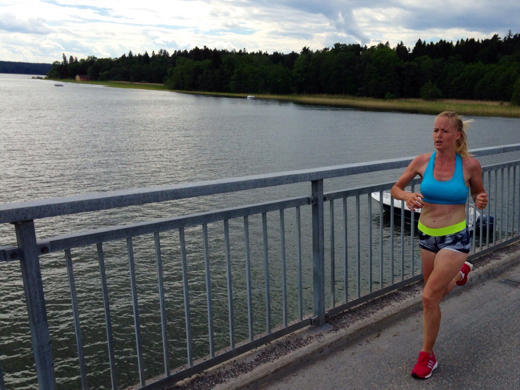 När vi kommit fem km stannade jag och drack några klunkar sportdryck och vände sen tillbaka mot Ekerö.