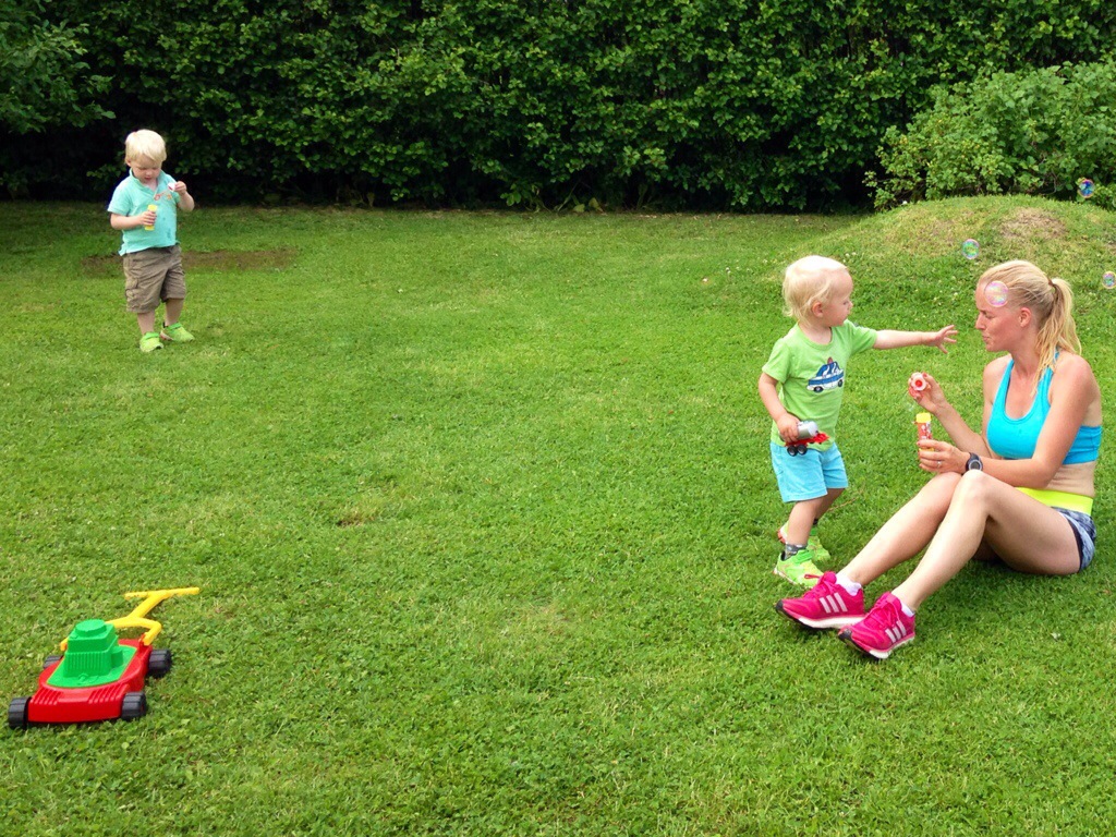 Trött, nöjd och glad vilar jag på gräsmattan och blåser bubblor med barnen.