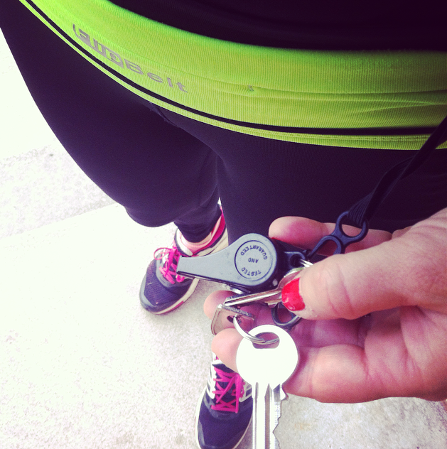 FlipBelt är en smart pryl. Det är som en ihålig, elastisk tub som träs över höften. Med fyra fickor där du kan lägga telefon, energigel, kort mm. Det finns även ett elastiskt snöre med en krok där du fäster dina nycklar. Sen vänder du bältet ut och in så att öppningarna ligger mot kroppen.