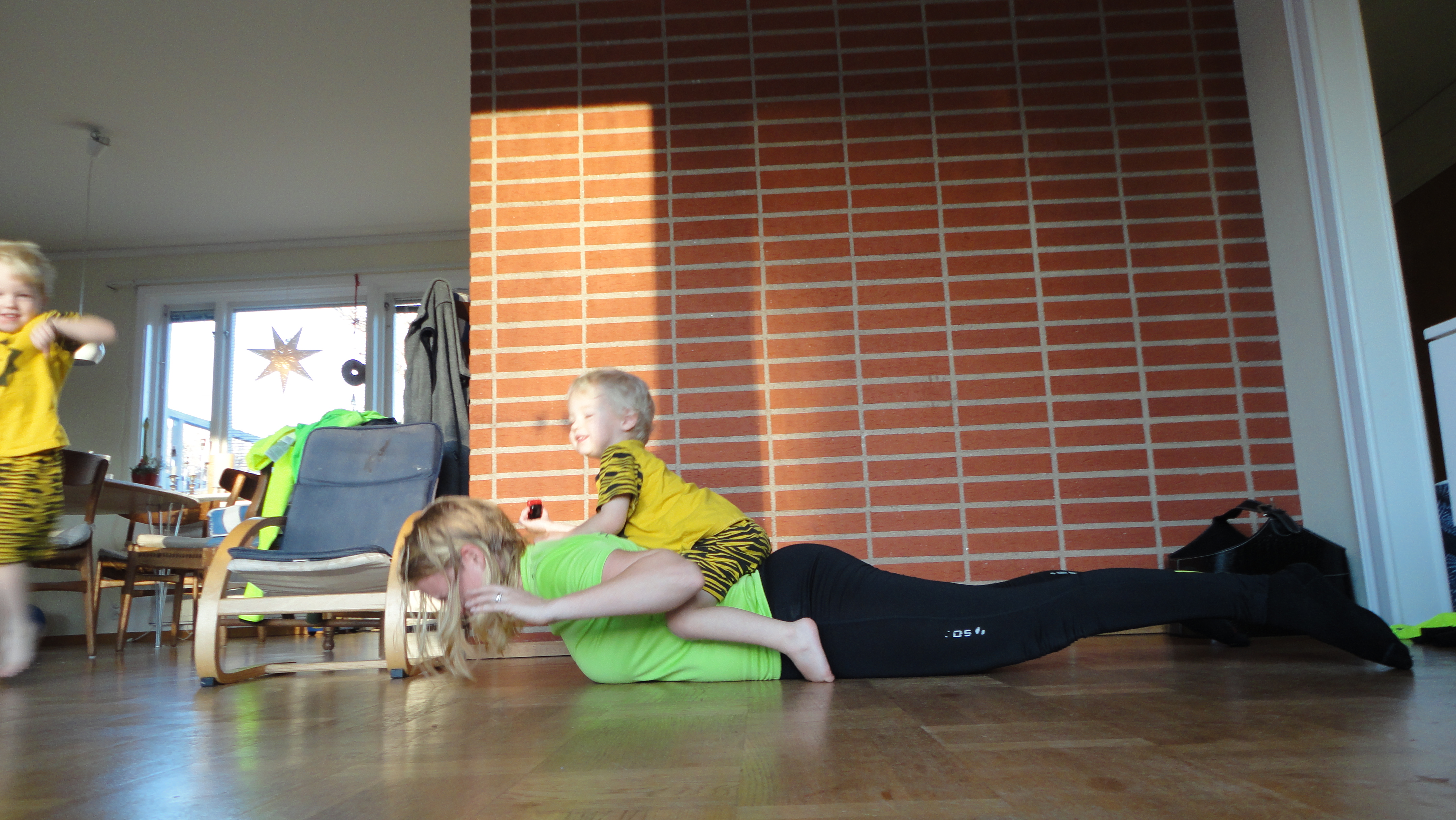 Sen gick jag in och körde plankan och rygglyft med vikter.