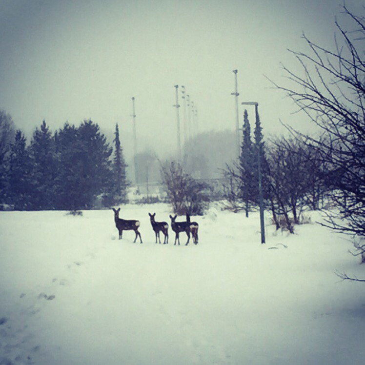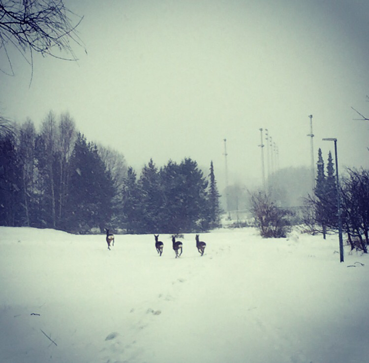 Vi träffade familjen rådjur som glodde på oss. Vi glodde tillbaka och fotade. De skuttade tillslut iväg.