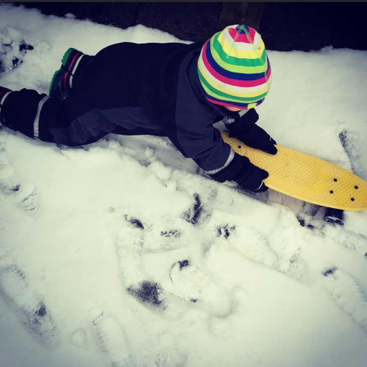 En som var missnöjd att inte kunna åka skateboard var Elliot. Han var arg som ett bi när han försökte släpa brädan i snön.