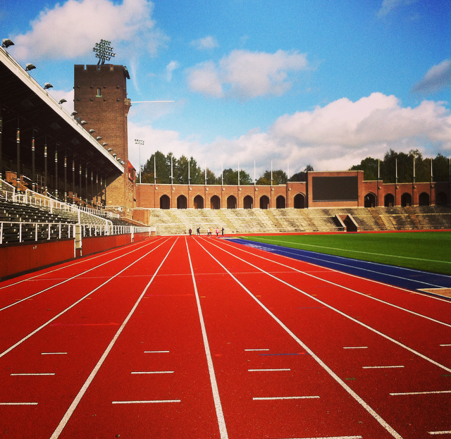 I onsdags förra veckan hade jag och Sophia bestämt att mötas upp på morgonen och ta ett löppass ihop. Men det spöregnade så vi hoppade den löpningen. På eftermiddagen skulle vi köra en företagslöpning. Det hann klarna upp och vi fick en solig och fin lunchlöpnig. Vi joggade ner till Stadion och körde korta intervaller på banan.